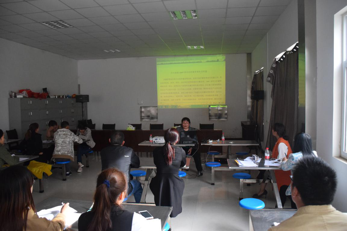質(zhì)量部部長(zhǎng)賀玉霞對(duì)全體員工進(jìn)行GMP質(zhì)量管理知識(shí)培訓(xùn)。